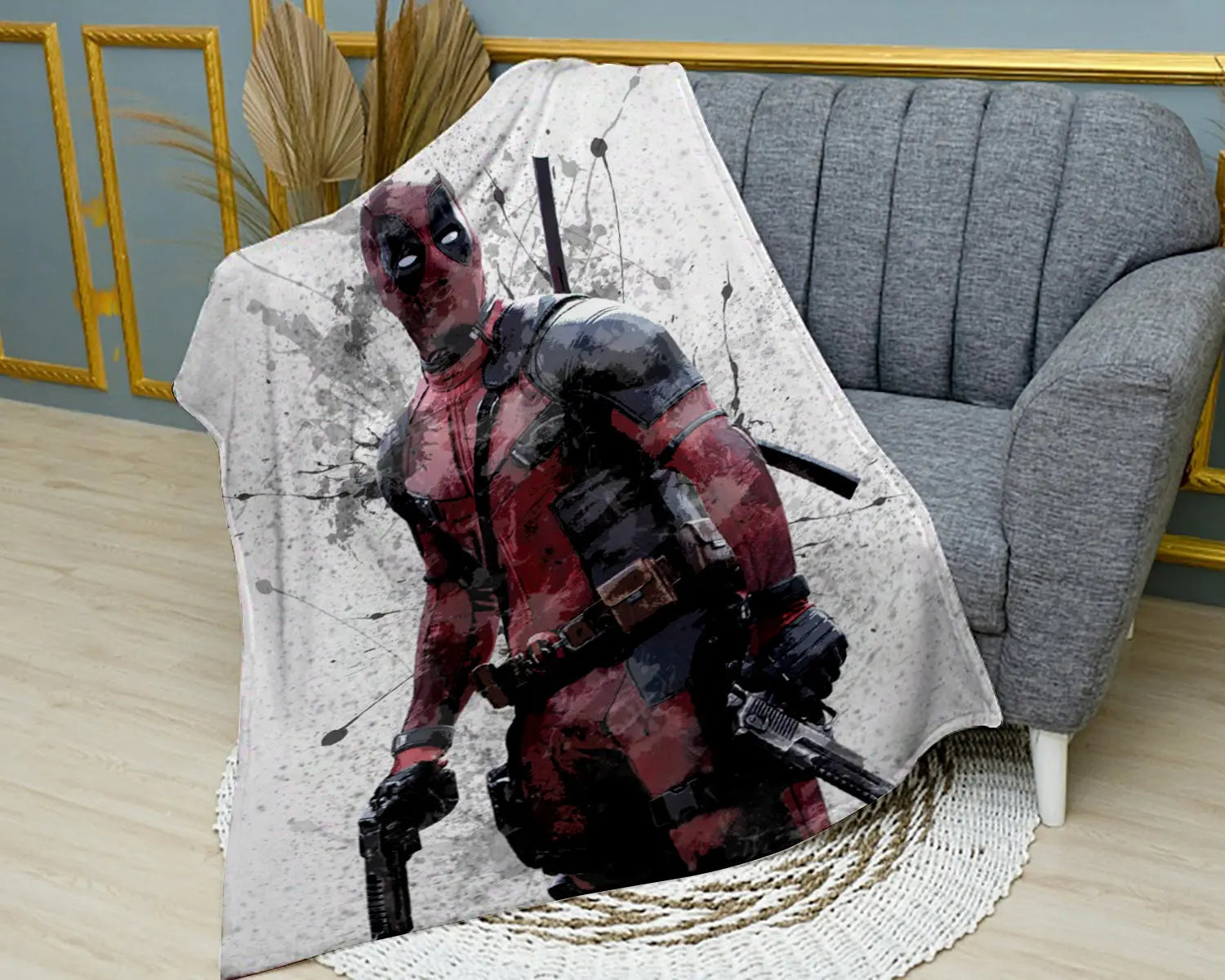 Manta polar con efecto salpicadura de Deadpool